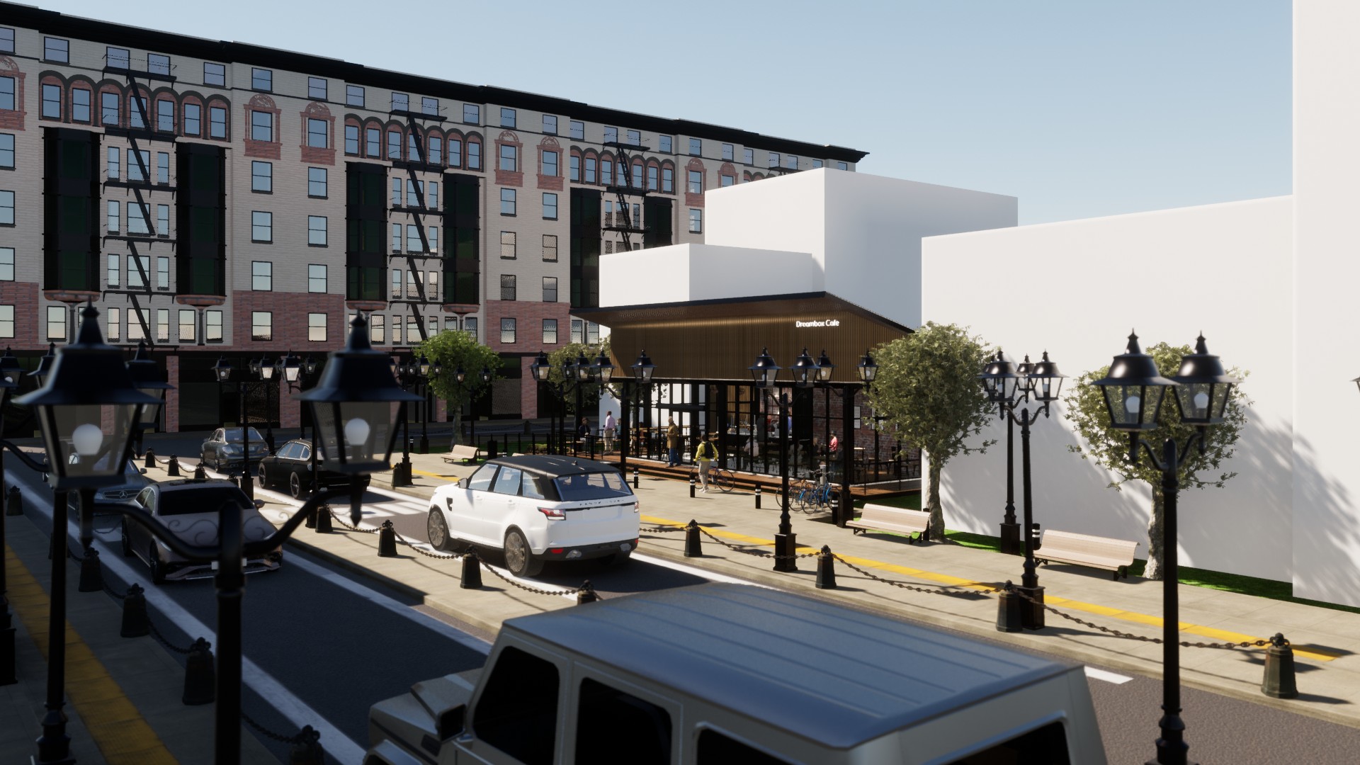 Azerbaycan'da bulununan CoffeBox projemiz için modern çizgiler kullandık.